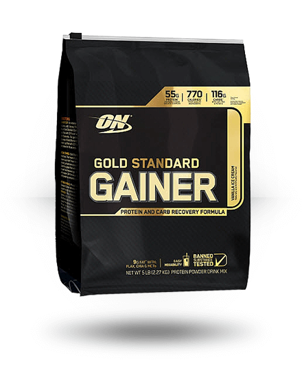 Gold Standard Gainer from Optimum Nutrition is a protein and carb recovery formula, loaded with 55 g of protein, and 112 g of carbs per serving.