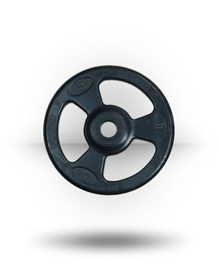 The Iso-Grip Rubber Encased Olympic Plate from York Barbell features their patent-pending Iso-Grip design and a robust protective rubber coating.