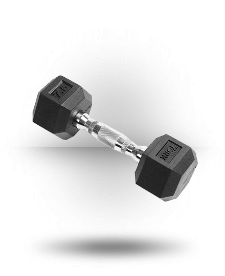 York Barbell Rubber Hex Dumbells have contoured, knurled chrome handles and durable rubber covered heads for increased safety and comfort. #34052